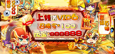 上线福利:vip6、元宝*888888、100召唤令、1000突破石、1000初级武将精华、800飞升丹、800时装精华(邮件获取)、银币*5000w