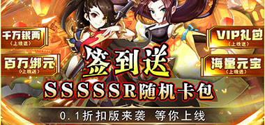 上线福利:送GM1、88w元宝、200w绑元、1000w银两、SSSSSR随机礼包*1、金装碎片*500、高级技能洗练石*20